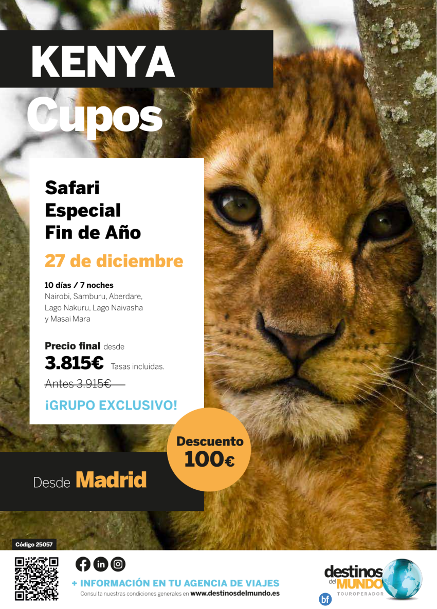 🇰🇪🥳🦓Safari Kenya especial FIN DE AÑO 🇰🇪🥳🦓 10 d / 7 n origen: Madrid salida: 27 diciembre desde 3.815€