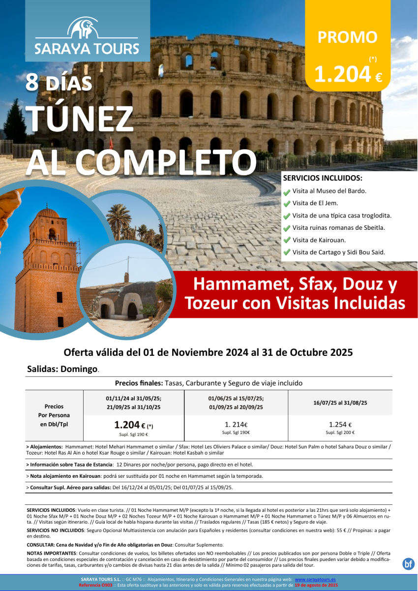 Túnez al Completo 8 días: Circuito con Visitas Incluidas hasta Octubre 26