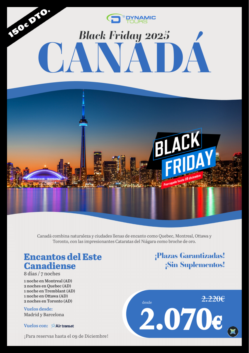 Canada ✈ ⚫prórroga BLACK FRIDAY⚫〔8d/7n﹞【150€ de DTO.】「reservas hasta el 09 de diciembre」⭢ desde 2.070€